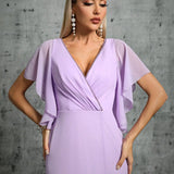 Robe demoiselle dâhonneur longue violet clair : Ă©lĂ©gance et grĂące assurĂ©es