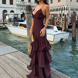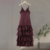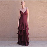 Conçue pour sublimer la silhouette, cette robe adopte une coupe Ă©vasĂ©e et fluide qui accompagne chaque pas avec grĂące. Son dĂ©colletĂ© en V met en valeur le port de tĂȘte tandis que les fines bretelles soulignent la dĂ©licatesse des Ă©paules. RĂ©alisĂ©e en matiĂšre polyester lĂ©gĂšre, elle offre un toucher doux et une tenue impeccable tout au long de la journĂ©e. La succession de volants superposĂ©s apporte du volume et du relief, crĂ©ant un effet de mouvement captivant. Parfaite pour un dĂźner dâĂ©tĂ©, une cĂ©rĂ©monie ou une sortie raffinĂ©e, cette robe incarne lâalliance subtile entre sophistication et aisance.
