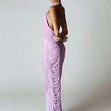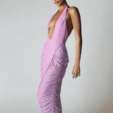 Conçue pour mettre en valeur chaque mouvement, cette robe longue séduit par son tombé fluide et sa texture douce au toucher. Le décolleté en V profond apporte une note audacieuse, tandis que le dos nu et raffiné révÚle subtilement la peau pour un effet glamour sans excÚs. Son tissu en maille extensible assure un ajustement parfait et une aisance agréable tout au long de la journée. Parfaite pour une soirée, un cocktail ou une occasion spéciale, cette robe allie style moderne et confort optimal pour un look inoubliable.