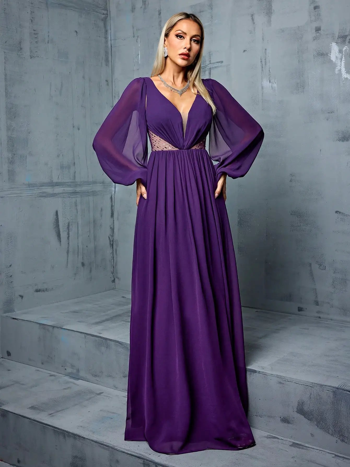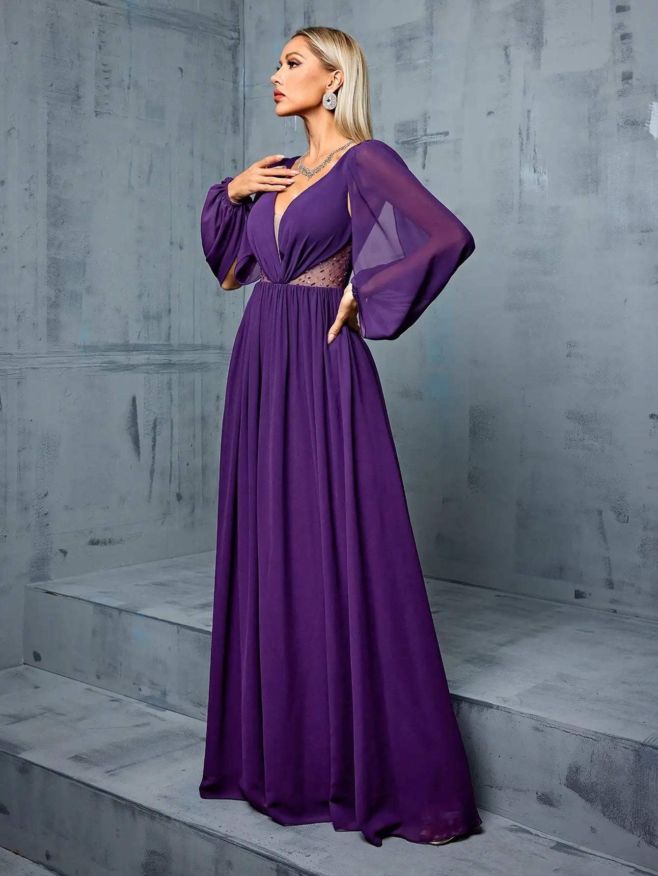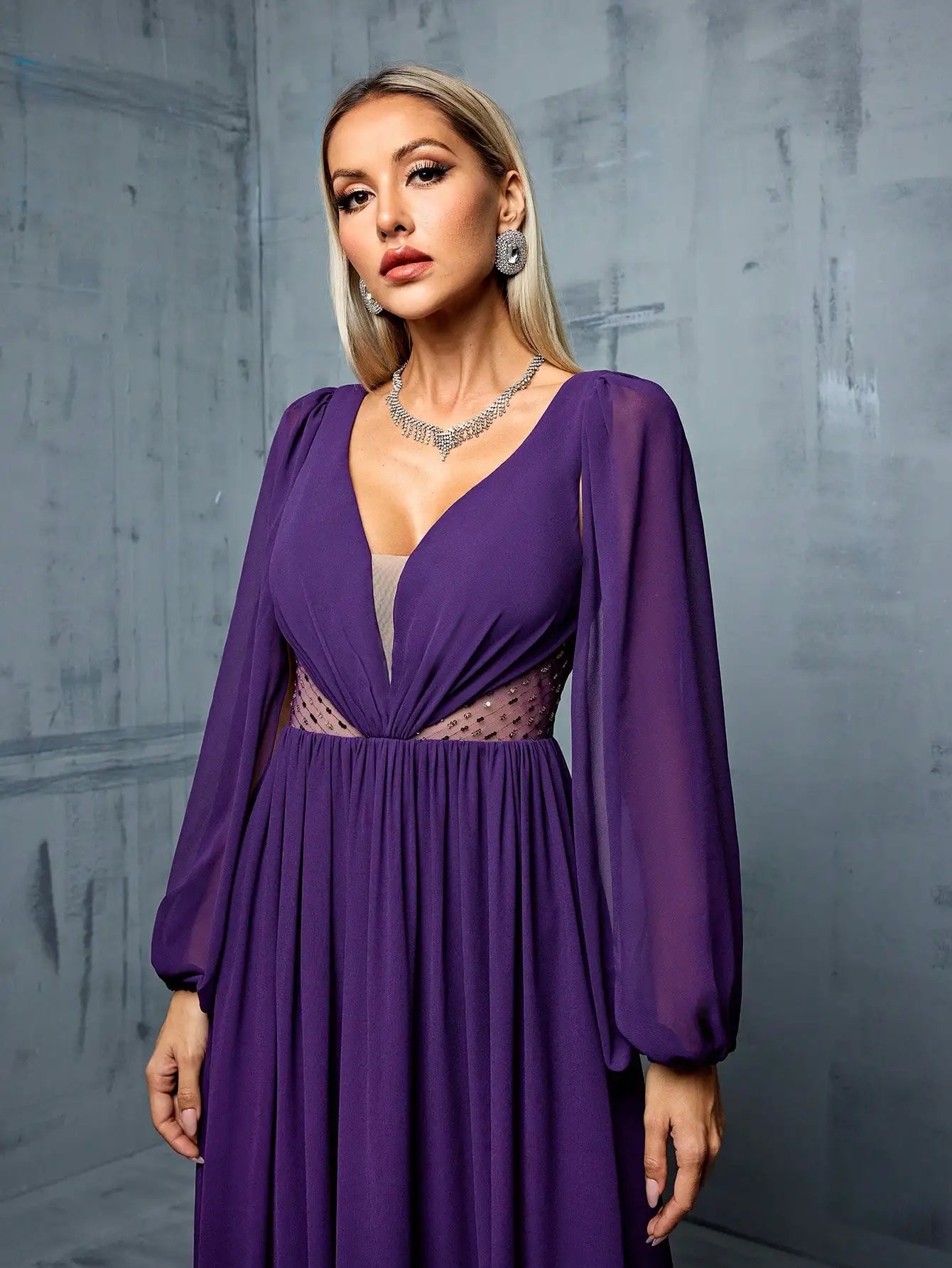 Offrez-vous une allure raffinée avec cette robe violette col en V, parfaite pour sublimer chaque silhouette grùce à sa coupe fluide et son ton profond plein de charme.