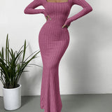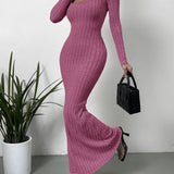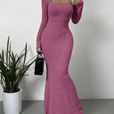 Robe violette moulante longue Ă col carrĂ© : lâĂ©lĂ©gance au fĂ©minin