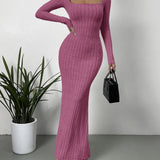 Conçue pour valoriser chaque courbe, cette robe associe un tissu extensible Ă une coupe moulante et fluide. Sa matiĂšre douce en polyester et spandex Ă©pouse dĂ©licatement la peau tout en offrant une aisance naturelle dans vos mouvements. La longueur jusquâaux chevilles et le col carrĂ© structurĂ© confĂšrent une allure raffinĂ©e et intemporelle. Parfaite en toute saison, cette piĂšce se porte aussi bien avec des talons quâavec des accessoires minimalistes pour un look chic et Ă©purĂ©.